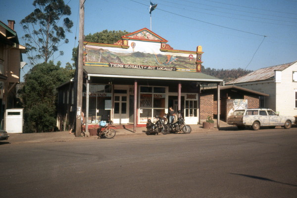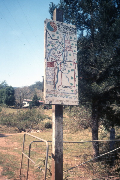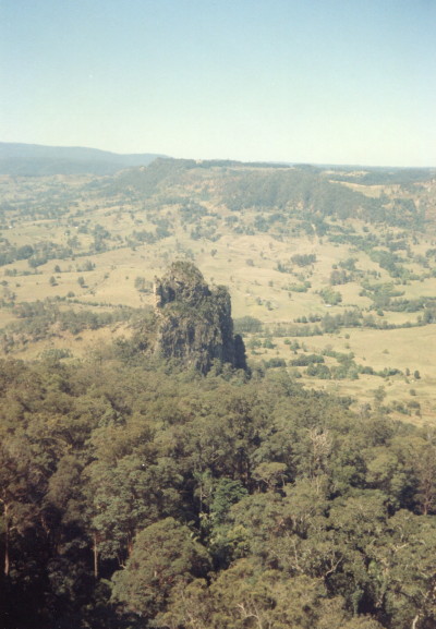 At Nimbin I stayed at "The Farm", a youth hostel, just outside of Nimbin. Christine, a Belgium woman who was leaving, recommended I see Nimbin Rock. I walked and hitched to the Rock. The town of Nimbin seemed to be a small town of hippies out of the Sixties.