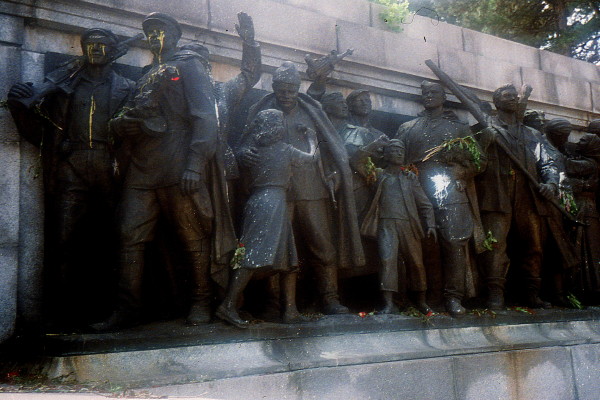 Photo: Photo: Heroic Communist statue, somewhat defaced