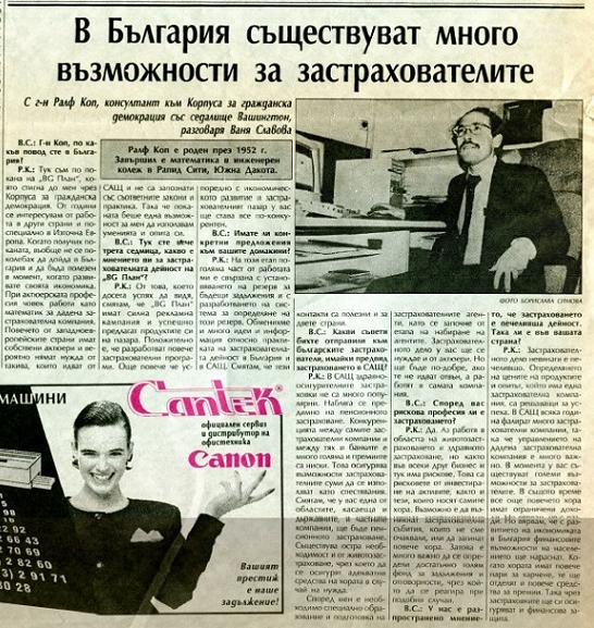 April 22, 1993 Worked on other aspects of reserves. Had interview in bar with woman journalist from the daily STANDARD. There were several Bulgarian daily and weekly newspaper publications. The STANDARD seemed to be about the best.