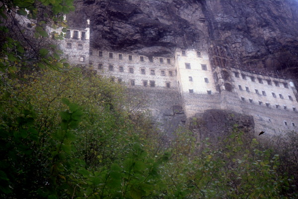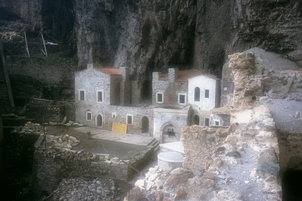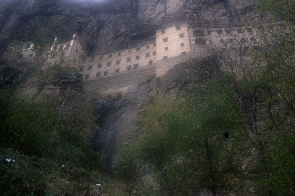 I wanted to go to the Sumela Monastery and soon found the taxi stand where transportation can be arranged. About the same time a South African couple, Wayne and Ronel, showed up with the same idea. The taxi driver took us to the site and waited until we were done touring, a couple of hours later. The Monastery was a Greek monastery, perched on a ledge hundreds of feet above the forest floor below. Much remained from the 6th century buildings.