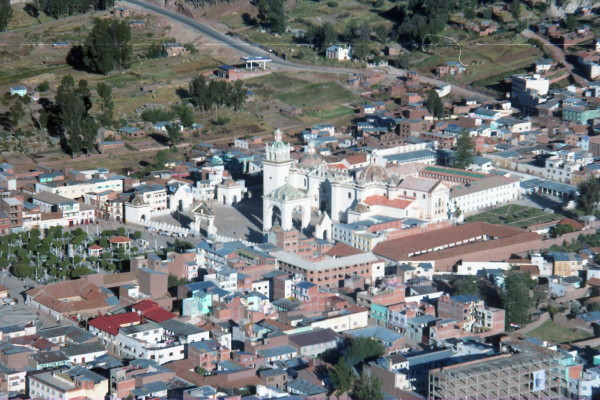 Once out of La Paz the road is mostly level. Many sections of the road are under construction or repair. The detours are very dusty and the towns infrequent. The altitude of 12,000 feet and the lack of sleep over the last two nights causes my head to ache. At San Pedro the bus is transported across Lake Titicaca on a wooden barge. The passengers have to take a separate boat ride.