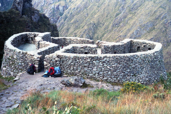 The remaining four of us left the pass at 1:00 PM and after a steep descent reached the Rio Pacamayo (Elevation 11,300') at 2:00 PM. After a quick lunch we continued up to the ruins of Runkuracay (Egg Hut). Runkuracay was probably a lookout point. We got to the second pass, Abra de Runkuracay (elevation 13,120), by 4:00 PM. From there it was an easy descent to Sayacmarca (Dominant Town).
