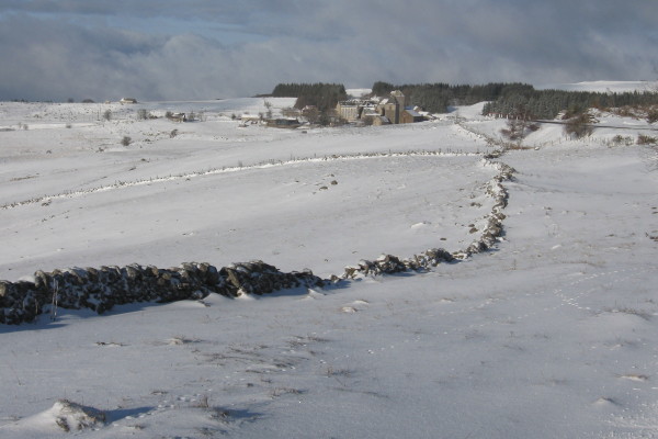 March 24, 2014 At night it had snowed several inches. Rather than walk the chemin path I stayed on the plowed road. Luckily there were few cars. One car was in a drift in the road. The altitude in the Nasbinals area was over 4,000'. After walking 10 km I started to lose altitude and saw less snow. Eventually I reached St Come d'Olt, an elevation of 1,300', and checked into the convent there.