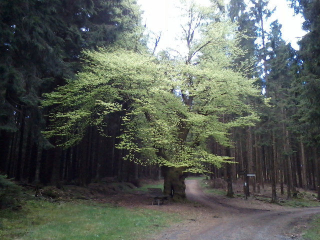 April 30, 2015 It was a colder day. In late morning I walked an extra 2 km to a village for lunch and to buy some trail food. Shortly after Rodenbach I a made a campsite in some trees. Had I gone about 30 meters further I would have found a hut. Rained at night.