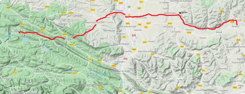October 26, 2019 Feeling better, but still with some tenderness in leg, I decided to try resuming the walk from Mirepoix. I took train from Carcassonne to Toulouse, Pamiers and bus to Mirepoix. Stayed at a small hostel that night and shared room with Otto from Finland. He had biked from his Helsinki home to here, but was ready to go home after 2 months. He was maybe in his 30's and worked as contractor.