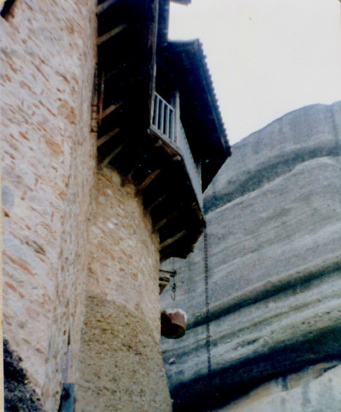 Apr 16, 1979 Although the morning was a little hazy, I hiked to the Meteora monasteries. They were built atop the rocks to protect the monks from their enemies. At the first monastery I was not allowed in as my hair was too long. Woman with slacks also were not allowed in. Some Americans (working in Greece) gave me a ride to the other monasteries that were open that day. I had no problem getting in and found them interesting, well kept, and catered to tourists. Most tourists were Germans traveling in modern buses.