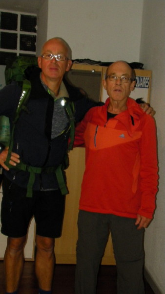 October 8, 2017 Louise &I left before 8 AM. It was cold in the morning, but a nice sunny day. As we were walking in the country, an older man asked us if we would like some coffee. We said yes and Joseph invited us in to his house. He was being visited by a social worker who prepared and delivered meals to senior citizens. He made us instant coffee and showed us postcards of other pilgrims he had also shared kindness with.