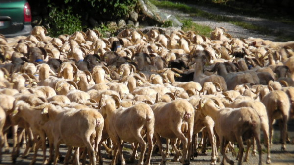 As I was passing thru Buziet, some shepards were herding sheep and I briefly helped when they started to go the wrong way. In Buzy the village had an outdoor party. After 27 km (954 km total), I reached Bescat and checked into the B&B there at 5 PM. Bescat was on a hill with a great view of the Pyrenees. The B&B was run by Kathyrin (German) and Michael.