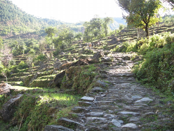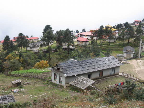 October 30, 2008 Though it rained overnight, today was a beautiful day. As I passed through Jubhing, many people were dancing. Got to Bupsa about 12:30 PM and stayed at the Yellow Top Lodge. Annett & Lutz showed up soon thereafter. We had dinner together.