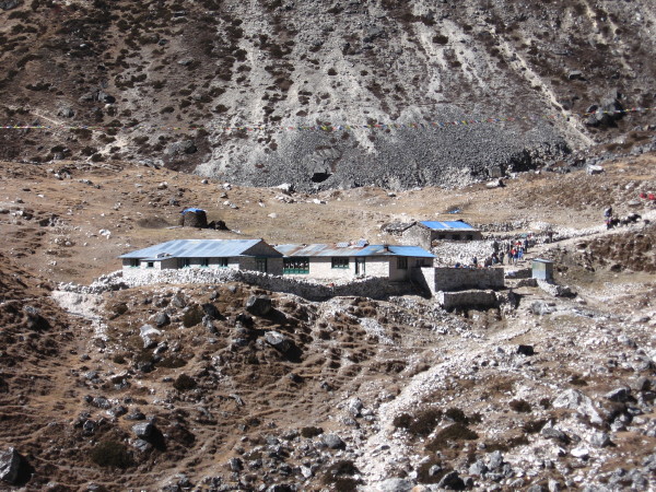From Pheriche I headed up the long, mostly flat valley, to the last up climb to Dughla. At the Yak lodge there, had lunch. I spent most of the afternoon killing time reading and trying to stay warm.