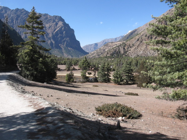 November 20, 2008 The trail to Chame was a gradual altitude increase. I had lunch in Bhratang. A little further on in Dhukure there were many groups of tourists having lunch. Up until then I had not seen many tourists at all.