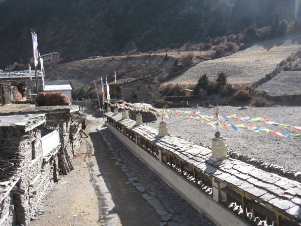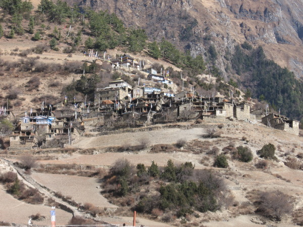 I stayed at a lodge at the far end of Lower Pisang. Also staying there were a couple from South Africa, living in London, and their guide. Had a nice visit over good food and a warm dining room.