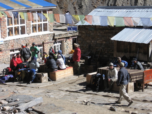 The sun was warm and it felt great to stay in the dining room with many windows. As soon as the sun went down, it was much colder, especially in my room. At night I did not sleep and had to venture outside to urinate every two hours. The doctors had told me that frequent urination at high altitude is a good thing.