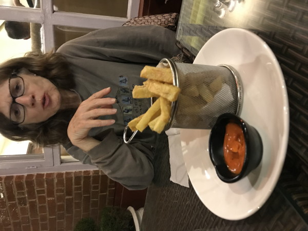 October 30, 2023 We arrived at the airport around 6 PM. Getting our visa and going through customs was very easy. We were met by the travel staff member who took us to our hotel, the Dom Himalaya near the Thamel tourist area. We shared a room for three on the 4th floor in a section of the hotel with no elevator. Taking the stairs was good training for our upcoming trek.
