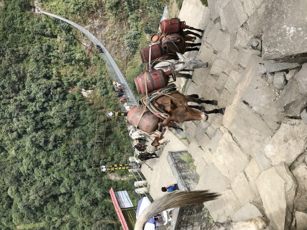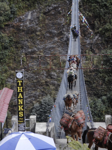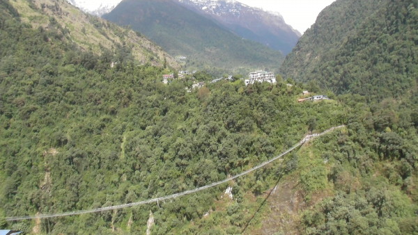 Initially we crossed a 280 meter bridge to get to Jhinu where we had lunch. Then we climbed up countless of stone steps to eventually get to Chhomrong. There were many walkers, both coming and going. One group was 20 loud polish people.