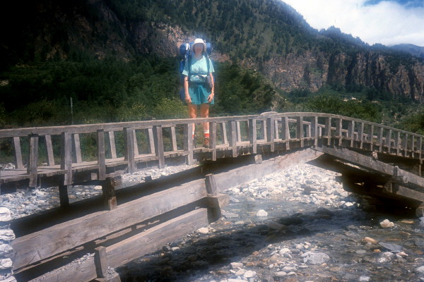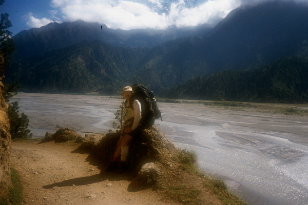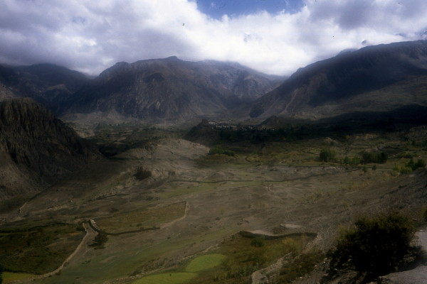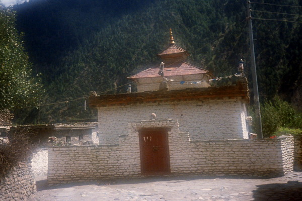 Oct 2, 1993 We joined Neila McCabe, a school teacher from Nova Scotia and her porter Sarish for the hike to Muktinath. As we gained altitude, the scenery became more rugged and open. We looked north to the restricted area of Mustang. At Muktinath we stayed in a marginal hotel with mud floors, but great food. Two Nepalese engineers told us of their years in Catholic school in Kathmandu.