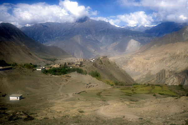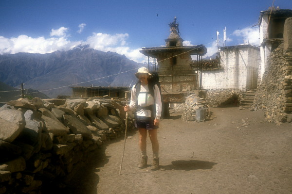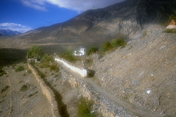 Oct 3, 1993 The sunrise on a clear day is very beautiful. Sarish, a Buddhist, took us to the Buddhist temple. The temple is built on top of a natural gas vein, which lights a flame underneath the alter. We walk back to Jomson, via Kagbeni. The last two hours were very windy and dusty.