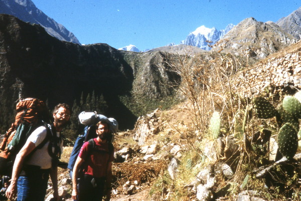 Friday, June 17, 1988 It was a long climb to get to Punta Union, but what a fantastic view once we got there! There we met a Peruvian, a mad Englishman, and porters and burros. Along the way down we met several other groups of hikers and climbers. For a campsite we found a nice spot in some small trees overlooking the marshy valley below. Rick tried to sleep out, but it was too cold. Water froze inside the tent.