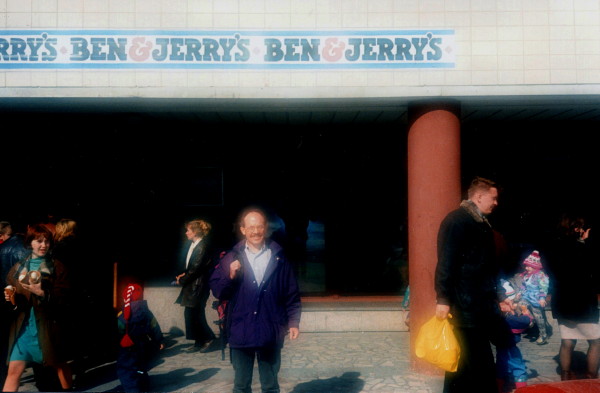 April 7, 1996 I met Joe at his room at the Northern Hotel. He had stayed with his host for one night, before moving into a hotel. We went to the Ben & Jerry's store. There was a long line of people waiting to buy ice cream. The pint containers being sold were imported from Vermont and were the same as what we buy in the US. The ice cream and waffle cones were made locally. Both were really excellent and at 50 cents (2500 rubles) for two dips in a waffle cone, a great deal.