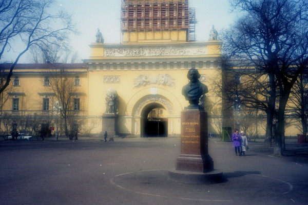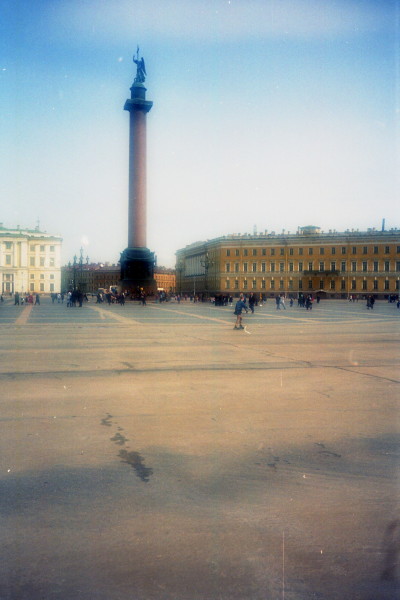 April 28, 1996 Dick and I went on a walk on a very pleasant sunny day. We saw many of the downtown sights and Nevski Prospect. Peter took us to a local cafe/bar for a simple Russian meal, a thick soup with Russian bread. Actually I think it was the best and cheapest meal I had the whole month.