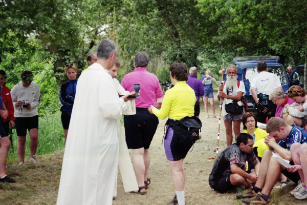 Later that morning we came across a catholic mass being said on a forest trail for 60 other London bikers. The bikers had started in Leon and had a support van plus priests.