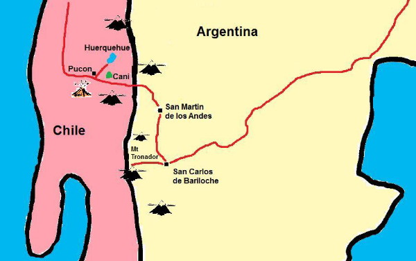 Map of Argentina lakes area