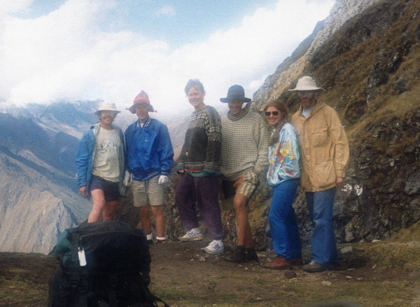 June 10, 1992 We got up at 4:30 AM to catch the 6:10 local train to the Inca Trail start at Kilometer 88. We were hiking by 10A.M. A Norwegian couple, Henna & Sven, hiked with us. The new Israeli group I met at the bar, were on the trail and were using porters, as most groups. Being macho South Dakotans, we didn't need any porters. The first day, as expected, was very difficult. Bernie had a chest cold. We camped next to a work group that was cleaning the trail.