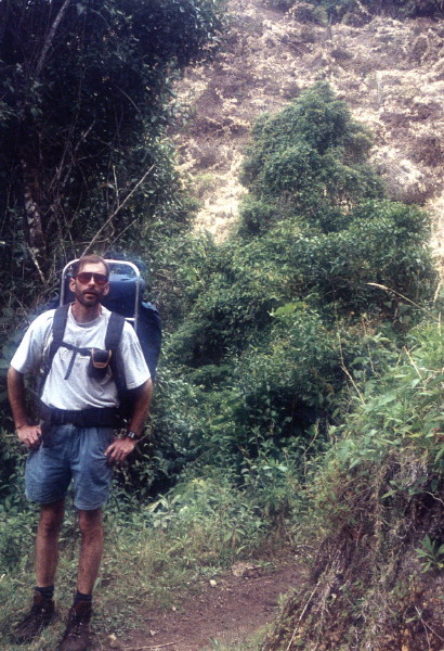 July 12, 1992 We joined up with Piet, a Netherlands man living in Quito, for a hike to a highland rainforest in Carchi. There were 10 people total. Because we had larger backpacks, Rick and I carried much of the food. Part of what I had was cooked rice and spaghetti sauce. We took a bus to El Angel.
