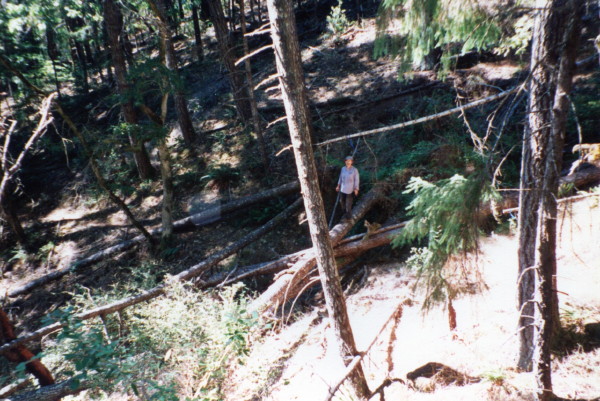 Project description An old trail from the Rogue River to an old settlers cabin had not been used for decades. We were restoring the trail by re-working the tread. We also did some saw work to remove fallen trees from the trail. Our transportation to and from the campsite was by motorboat.