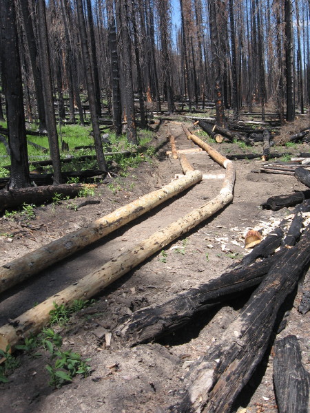 Project description Build turnpike. We walked about 15 miles to get to Schafer Ranger Station the first day and then another 15 miles the next day to reach the campsite. Worksite was in the midst of a recent fire and about a 4 mile walk from the campsite.