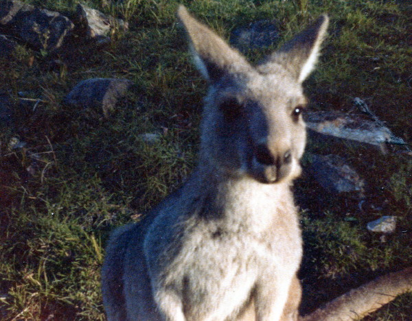 Emerging back into the bright autumn colors we fed the kangeroos that came up to greet us. These park kangeroos were almost domesticated. After I had fed the last of the bread to the 3 kangeroos, Paul, who was shooting pictures said "Give them some more bread." When I replied "We don’t have any more", the 3 kangeroos turned around and hopped off. Very funny.