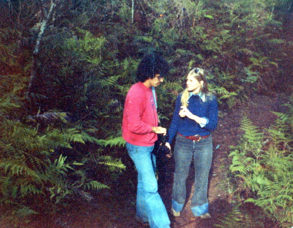 We traveled to a nearby forest preserve of which the biggest attraction is the Den of Nargon, an Aboriginal site of ancient significance. To reach the Den we had to take a foot trail which wound down the side of a narrow semitropical canyon. In some places the trail was slippery and blocked by fallen trees. There were also long vines hanging from the trees by which one could swing, like Tarzan. At the floor of the canyon a well trod path led upstream to the Den. This was the first time Paul or Robin had seen water flowing over the ledge just above the Den.