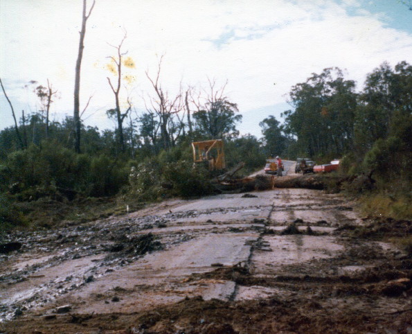 Sometimes roads were blocked because a large tree had fallen across the road. On occasion we had to wait until a tree was removed before we could continue. After removal the trees were burned.