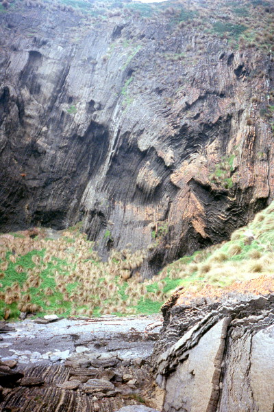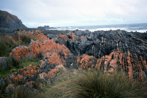 Photo: Vertical rock layers at Cape Liptrap