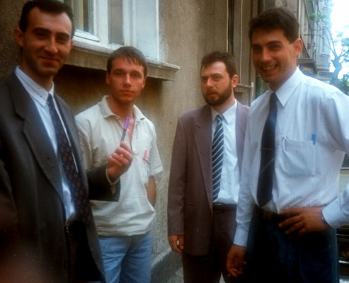 Photo: Sasha, Roumen, Evgeni & Dr Stefan enjoying a cigarette break