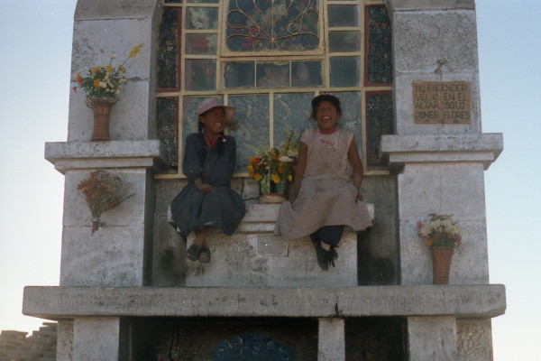We arrive at Copacabana at dusk, around 6:30 PM. A boy meets us as we get off the bus and leads us from the main square to the Hostal Oasis. We stay in two rooms, with shared toilet and shower. The cost is about $1.25 per person.