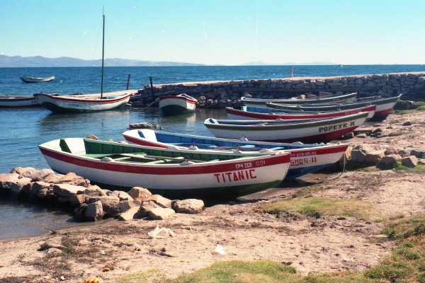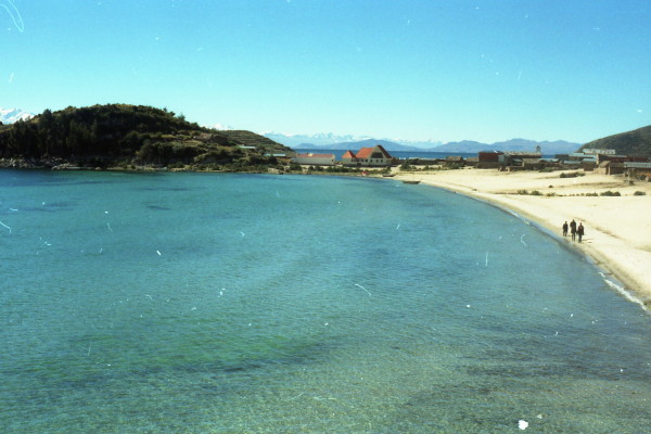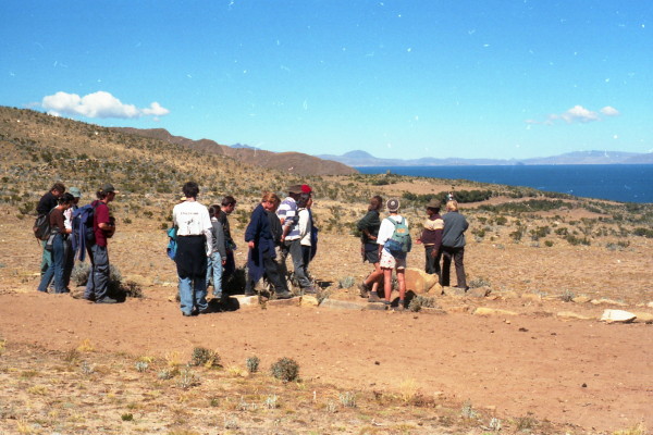 Wednesday, May 28, 1997 We get up early for the boat tour of the Islands of the Sun and Moon. The boat left about 8:30 AM from the port with about 20 passengers. Besides us there were a number of Israelis, French, Suisse, a New Mexican, and other foreigners. The surprisingly comfortable boat was covered, had cushions on the seats, two US boat motors, and plenty of gas. It took two hours to reach the north side of the Island of the Sun.