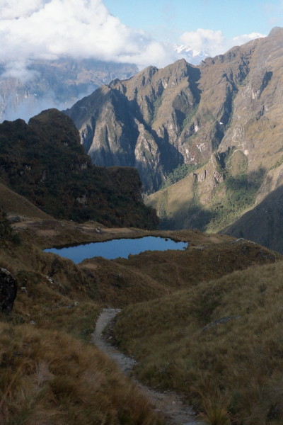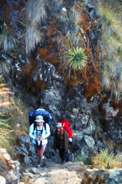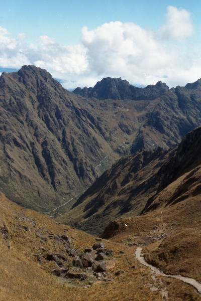Sunday, June 1, 1997 We were on the trail by 6:30 AM, heading uphill to the Abra de Huarmihuanusca (Dead Womans Pass). I reached the top by 11:00, but we had to wait an hour for the others to reach the 13,500' pass. After resting, Jan decided to go back to the start, and Rick decided to return with her.