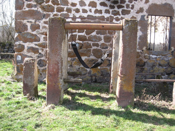I passed through a few small villages. Occasionally I would see a structure (m tier ferrer les boeufs) that I later learned was used to treat oxen in older times.
