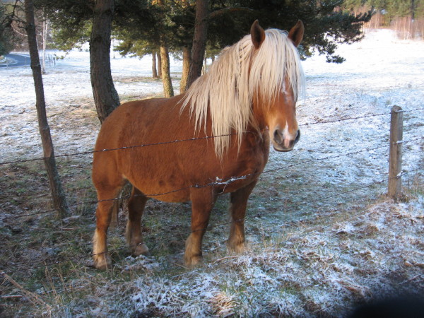 Photo: Friendly horse on cool morning