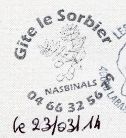 Later, following a path in the woods, I took a wrong turn and was briefly lost. Two trees that had fallen across the path was my undoing. Later I got to Aumont Aubrac and found the Gite Faisant at the same time a man was delivering some things to the locked gite. We called the owner, Annie, to work out the stay details.