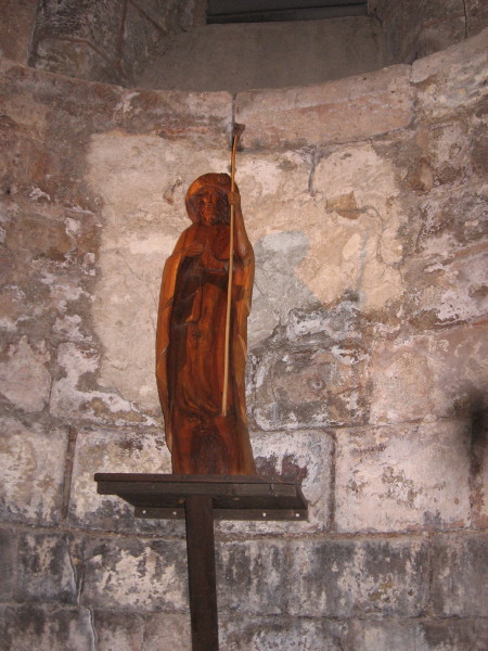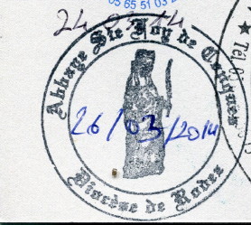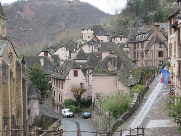 March 26, 2014 I left at 6:30 am to walk the 37 km to Conques. It was a good day for walking. Along the way, I found a pepper spray canister on the trail next to a tree that had fallen. When I reached the monastery, I asked a woman if she was missing the spray. It belonged to her companion who had it because earlier she had seen a naked man in the woods on the chemin.