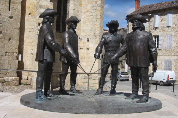 Photo: Statue of 4 musketeers outside Condom cathedral
