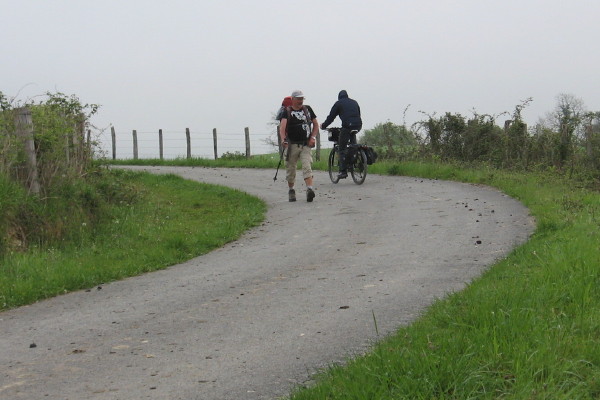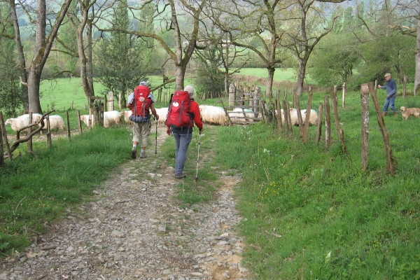 April 14, 2014 We all made it to St Jean, stayed at Albergue Pelerin and had dinner together. The next day Lynn was going home, and Eric and Olivier were resting a day or two. St Jean is the starting place for the famous Camino Frances and is popular with tourists. So many people. My last night in France.