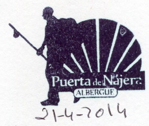 April 21, 2014 I saw many bikers on the trail in the morning. Had lunch at a roadside park near Ventosa. After lunch I walked with Hanna from Ireland the last few kilometers to Najera. She had managed a bar in Leon France, but was taking time off before she went back to work. I stayed at Puerta de Najera albergue, a very nice place.