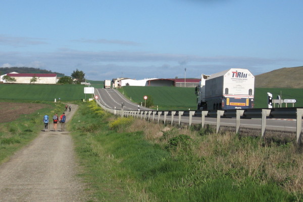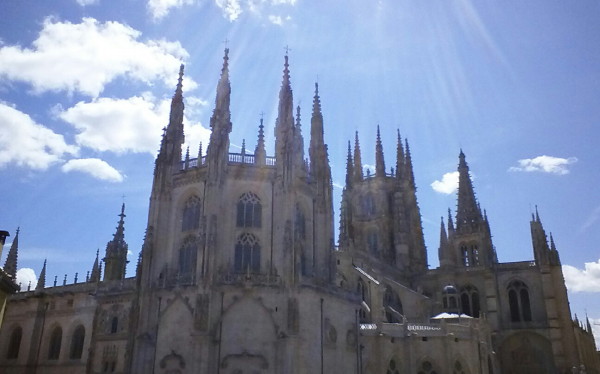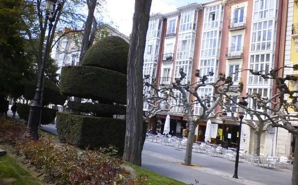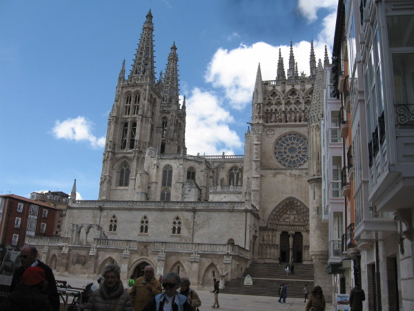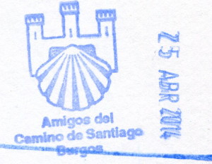 April 25, 2014 Cold windy day. Glad I had gloves and warm hat. It was a long walk on concrete thru suburbs to downtown Burgos. I experienced some pain in my right shin. The municipal albergue was modern and clean. I shared a space with the 3 french from 2 days before. Very scenic town.
