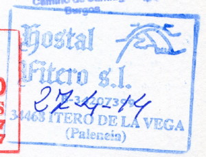 April 27, 2014 I felt good until I got to Castrojeriz, then the shin pain became severe. I stopped for a coffee and then felt better. I continued to top of Alto Mosteares, but soon the pain returned. I stopped at Albergue Puente Fitero in Itero de la Vega and stayed there two nights.