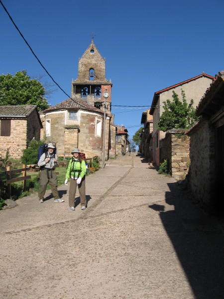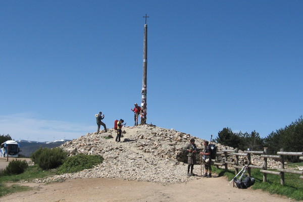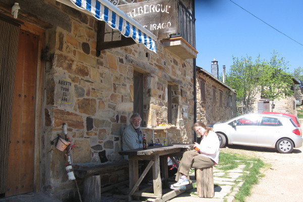May 7, 2014 In the morning we reached the Cruz de Ferro. It was a warm day for walking and the downhill walk to Acebo seemed very long. We stayed at Meson El Acebo, a crowded though friendly place. Had a great pork steak for dinner.
