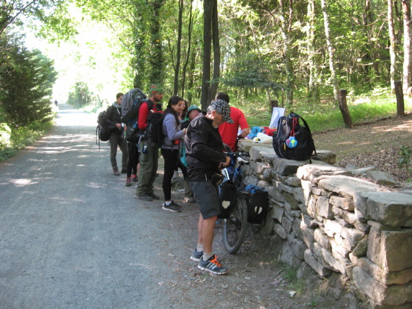 May 15, 2014 Walked in mixture of industrial and woods. At Ribadiso, stayed at albergue. Had good food at nearby restaurant.
