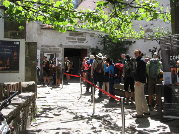 May 17, 2014 I was passed by many Spanish men with daypacks early on. Got to Santiago at 1 PM and stayed at Azobache albergue near cathedral. Went to pilgrim mass and got the Compostela at the pilgrim office.
